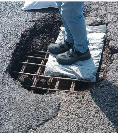 Bugün radar uygulaması için bölgede bulunan polis ekipleri, yolda oluşan obruğu fark ederek hemen güvenlik önlemi aldı. Durumu Karayolları ekiplerine bildiren polisler, bölgedeki trafiği güvenli hale getirirken, ekipler hızla olay yerine gelerek oluşan çukuru soğuk asfalt ile kapattı.