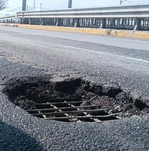 Sivas'ta Karayolunda Oluşan Çöküntüler Tehlike Saçıyor!