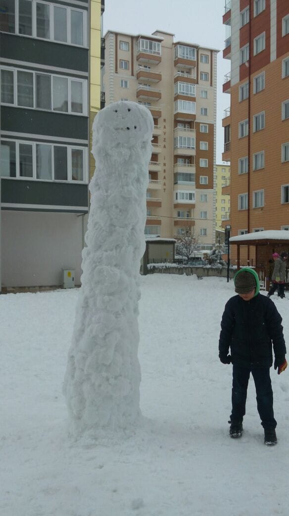 Kar yağışı aktivitelerinin vazgeçilmezi kardan adamlar ilimizin dört bir yanını sarmaya başladı. Kimi kardan adamına kask taktı “önce can güvenliği” dedi”, kimi maske taktı “canavar” dedi, kimi yanına bankta oturan arkadaş, kimileri ise kardan tünel ve kulübe yaptı.