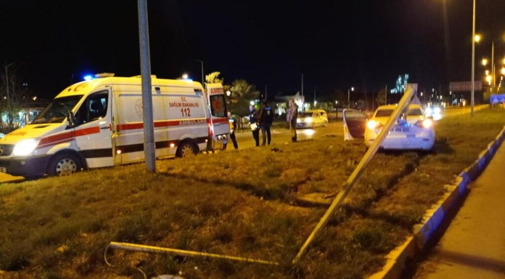 Sivas'ta kontrolden çıkan otomobil aydınlatma direğini devirdi!