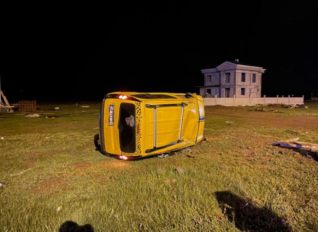 Sivas’ın Şarkışla ilçesinde karşısına çıkan köpeğe çarpmamak manevra yapan araç araziye devrildi. Kazada 2 kişi yaralandı.