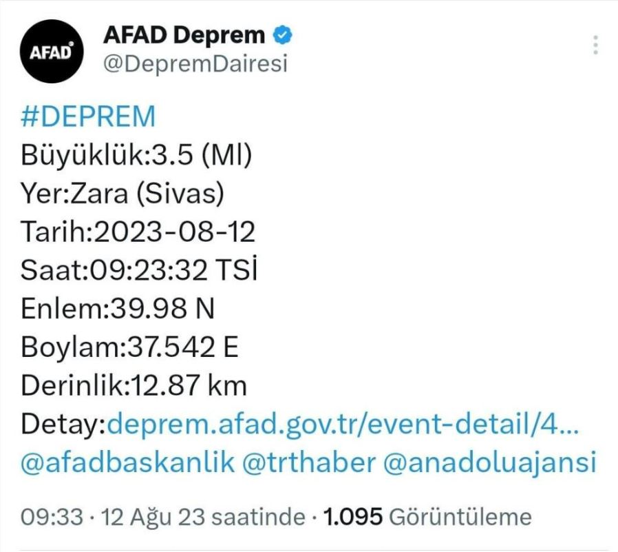 Sivas’ın Zara ilçesinde 3.5 büyüklüğünde bir deprem meydana geldi.