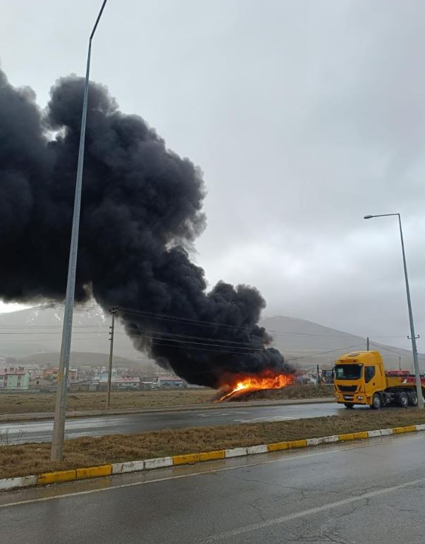 Sivas’ın Yıldızeli ilçesinde bir iş yerinin bahçesinde bulunan sulama boruları alev alev yandı. O anlar cep telefonu kamerasına yansıdı.