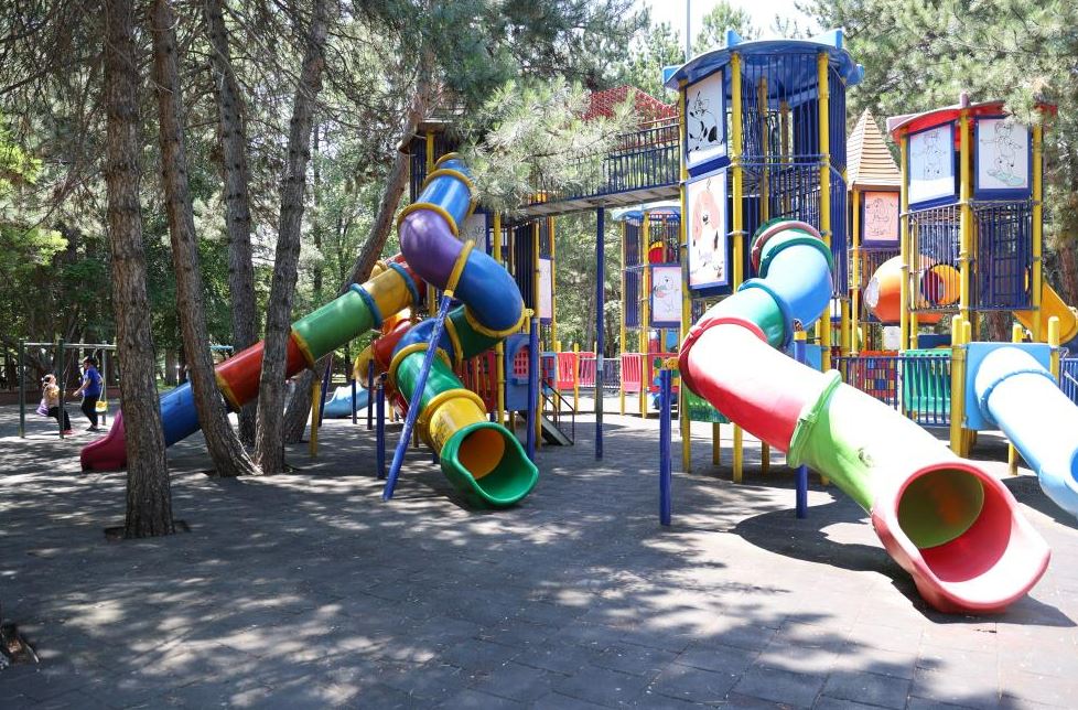 Sivas'ta çocuğuyla kaydıraktan kayarken ayakkabısının topuğu kaydırağın birleşim noktasına sıkışarak mahsur kalan kadını mahalle muhtarı kurtardı.