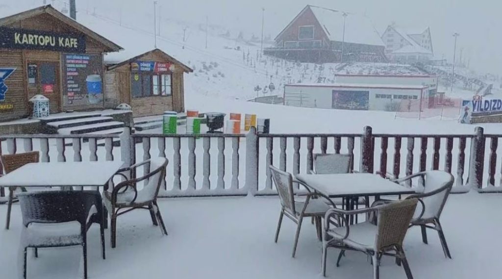 Kentte sabah saatlerinde etkisini gösteren yağmur yüksek kesimlerde yerini kar yağışına bıraktı. Kent merkezine uzaklığı 58 kilometre olan 2 bin 552 rakımlı Yıldız Dağı Kayak Merkezi, kar yağışıyla birlikte yeniden beyaz örtüyle kaplandı. 'Mart kapıdan baktırır kazma kürek yaktırır' atasözünün gerçek olduğu kentte hava sıcaklığı eksi 2 dereceye düştü. (İHA)