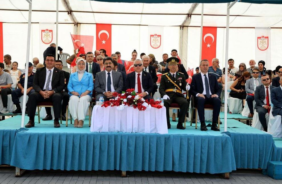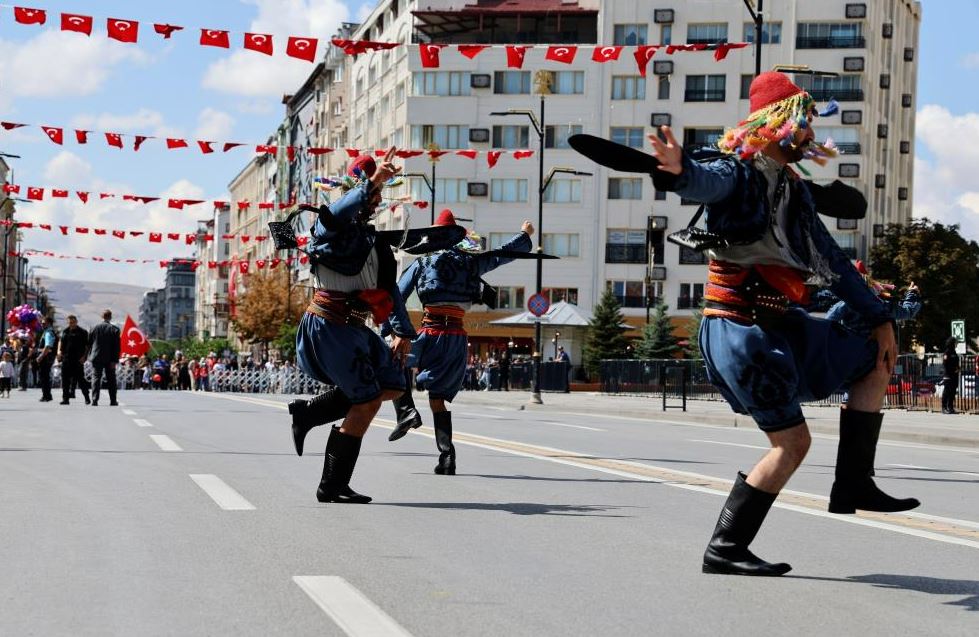 30 Ağustos Zafer Bayramı'nın 102'nci yıl dönümü, tüm ülkede olduğu gibi Sivas'ta da coşkuyla kutlandı. Vali Yılmaz Şimşek ve 5'nci Piyade Eğitim Tugay Komutanı Piyade Albay Cüneyt Mutlu, askeri araçla halkı selamlayarak 30 Ağustos Zafer Bayramı'nı kutladı. Saygı duruşu ve İstiklal Marşı okunmasıyla başlayan programda Garnizon Komutanlığı adına günün anlam ve önemini belirten konuşmalar yapıldı. Cumhurbaşkanı Recep Tayyip Erdoğan'ın 30 Ağustos Zafer Bayramı mesajının okunmasının ardından Sivas İl Jandarma Komutanlığı Asayiş Komando Bölüğü gösteri yaptı. Gösteri vatandaşlar tarafından ilgiyle takip edildi. Gösteri sonrası Komando Andı okuyan jandarmalar, izleyicilerden alkış aldı. Program, halk oyunları gösterilerinin ardından tören geçişi ile sona erdi. (İHA)