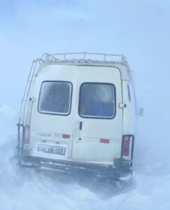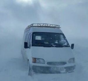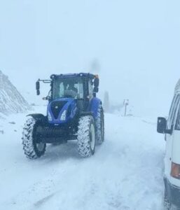 Göz gözü görmeyen tipide mahsur kalan Alagöz’ün yardımına köylüler traktörleriyle koştu. Uzun bir uğraş sonucunda araç saplandığı yerden kurtarılarak köye götürüldü.