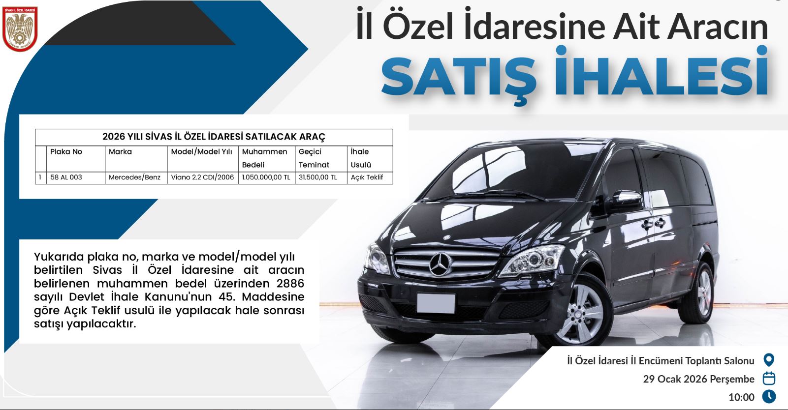 Sivas İl Özel İdaresi, araç satış ihalesi, açık teklif usulü, Mercedes Viano, ihale duyurusu, Sivas