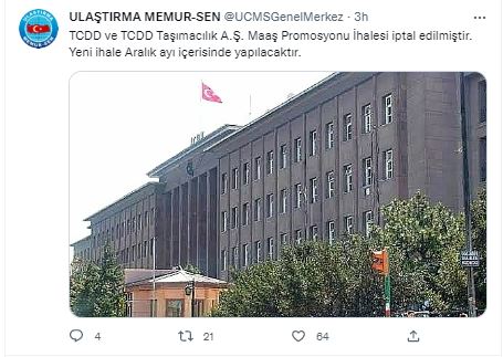 Yapılan ihale sonucunda en yüksek teklifin 21.000-TL olduğu bilinirken bugün yetkili sendika Ulaştırma Memursen'den yapılan açıklama ile promosyon ihalesinin iptal edildiği duyuruldu.