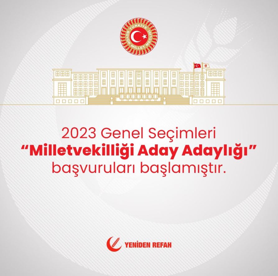 Yapılan açıklamada: "Yeniden Refah Partisi’nde 2023 Genel Seçimleri “Milletvekilliği Aday Adaylığı” başvuruları başlamıştır." ifadelerine yer verildi.