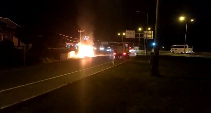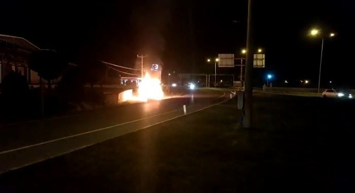 Sivas’ta bir otomobil alev alev yandı, o anlar cep telefonu kamerasına yansıdı.