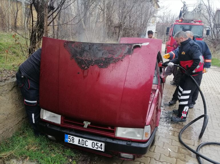 Sivas'ta otomobilde çıkan yangını itfaiye ekipleri söndürdü!
