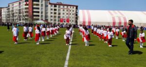 Öğrenciler coşku içerisinde gösterilerini sergilerken veriler ise geniş bir katılımla tribünlerden onları izledi.
