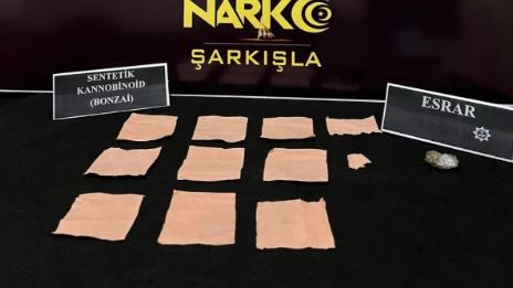 Durdurulan araçta ve araçta bulunan 2 şahıs üzerinde yapılan aramada; 11 adet kâğıt peçeteye emdirilmiş toplamda 3 bin 342 adet kullanımlık sentetik kannabinoid maddesi, 1 adet plastik naylon içerisinde daralı ağırlığı 2,14 gram olan esrar maddesi ele geçirildi.