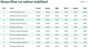 Sivasın sahur ve iftar saatleri belli oldu. Sivas için yarın iftar saati 19:26 TERAVİH: 20:52'de.