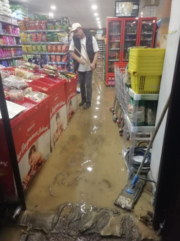Sivas'ın Divriği ilçesinde etkili olan sel sonrası bazı iş yerlerini su basarken araçlar ise su altında kaldı.