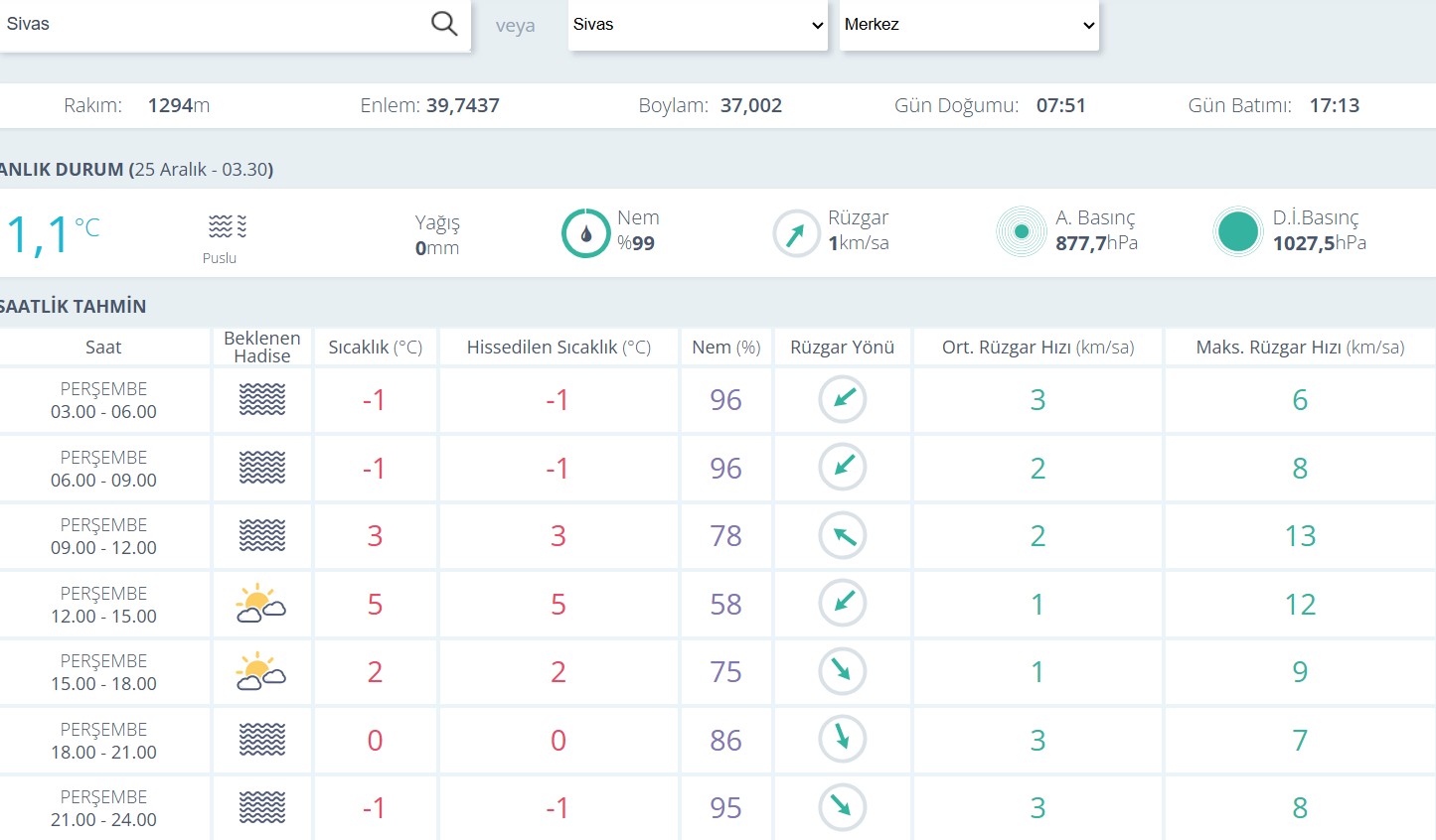 Sivas, hava durumu, sis, soğuk hava, meteoroloji, saatlik tahmin, buzlanma, kış koşulları
