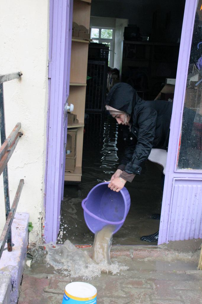 Yağmur nedeniyle birçok ev ve iş yerini de su bastı. Vatandaşlar kendi imkanlarıyla temizlik çalışması yaptı. Evleri su basan bazı kadınlar gözyaşlarına hakim olamadı.