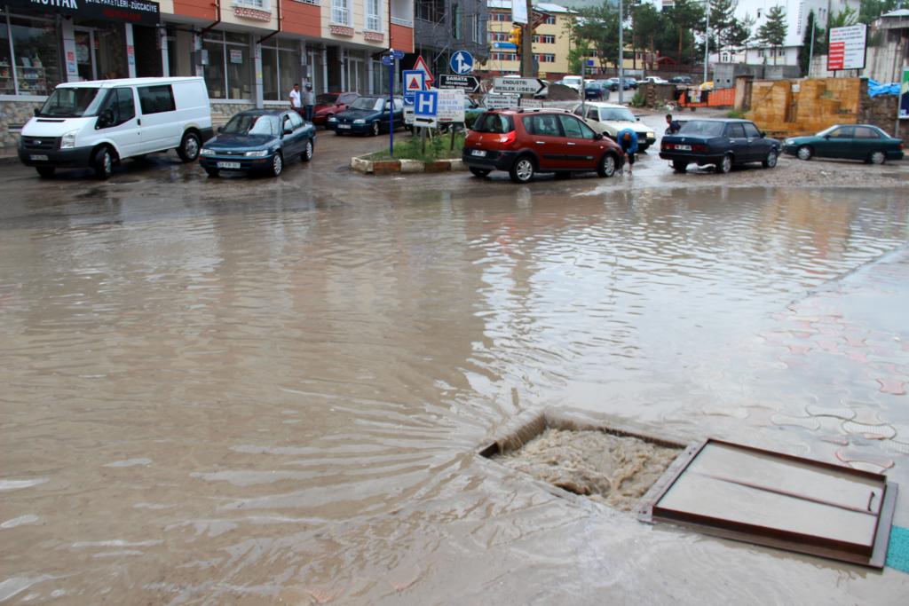 İlçede kısa süreli etkili olan sağanak yaşamı olumsuz etkiledi. Araç sürücülerinin oluşan su birikintileri nedeniyle trafikte güçlükle ilerledikleri görüldü. Belediye ekipleri su birikintisi oluşan bölgelerde rögar temizleme çalışması yaptı.