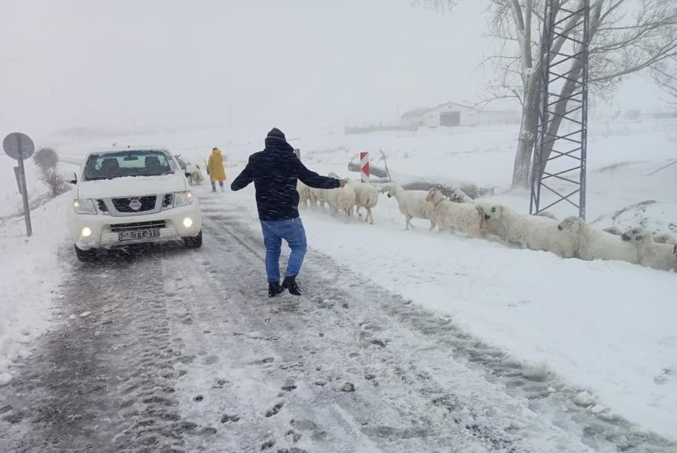 Sivas'ta gün boyu etkili olan kar yağışı hayatı olumsuz etkiledi. Altınyayla ilçesinde kardan dolayı kırsal bölgede mahsur kalan çoban ve koyun sürüsünün imdadına İlçe Özel İdare ekipleri yetişti. 112'yi arayarak yardım isteyen çoban, kapanan yolun açılmasıyla sürüsü ile birlikte ilçe merkezine ulaştı. (İHA)