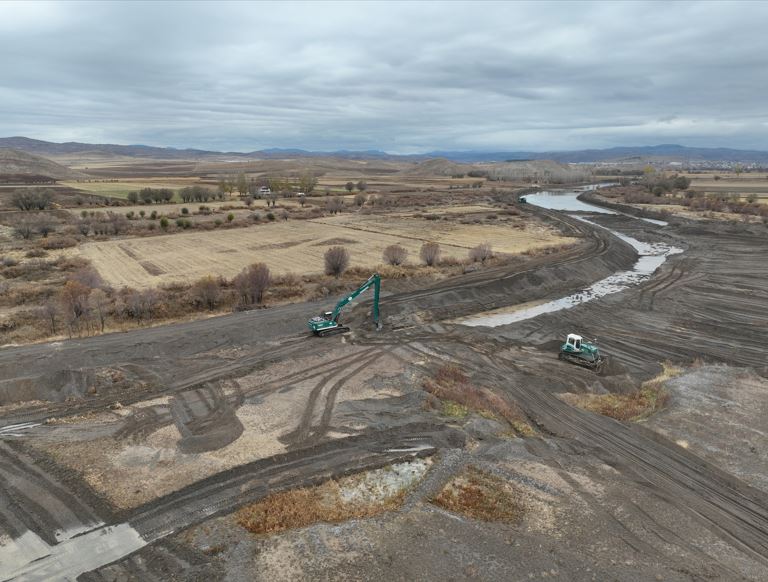 "2 adet paletli ekskavatör ve bir dozer ile devam eden ıslah çalışmasında bugüne kadar işin 8 kilometrelik kısmı tamamlandı ve 375 bin metreküp kazı, dolgu gerçekleştirildi. Ayrıca 1,5 kilometrelik kısımda yapılan 182 bin metreküplük kazı, dolgu ve sedde imalatı ile ırmak yatağında değişiklik ve düzenleme yapılmıştır. Projenin bugüne kadar tamamlanan kısmında 2 yerleşim yeri ve 8 bin 652 dekar tarım arazisi taşkın zararlarından korunmaktadır."-AA