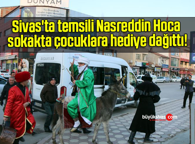 Sivas'ta temsili Nasreddin Hoca sokakta çocuklara hediye dağıttı!