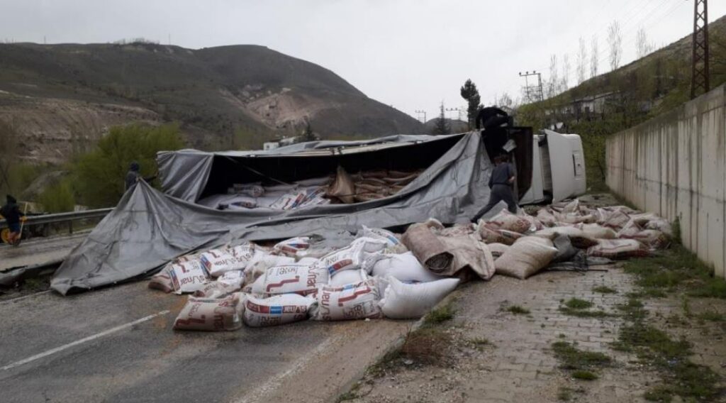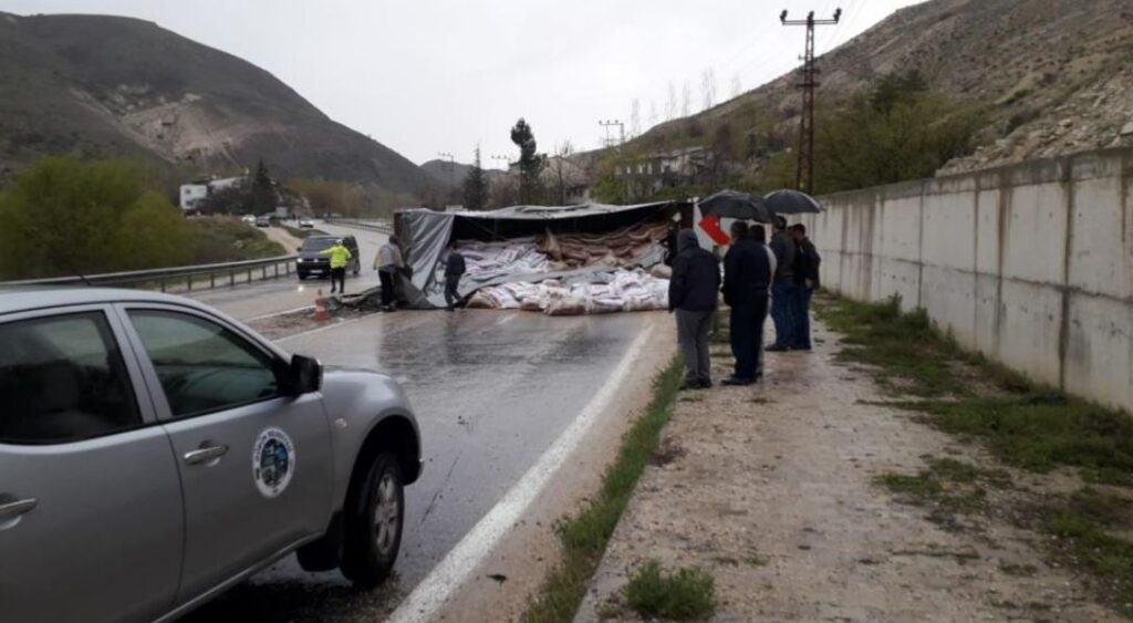 Edinilen bilgilere göre kaza, Gürün ilçesi Suçatı mevkiinde meydana geldi. Malatya istikametinden Kayseri istikametine seyir halindeki M.K. idaresinde 58 PC 173 plakalı hayvan yemi yüklü tır, yağış nedeniyle kayganlaşan yolda sürücüsünün direksiyon hakimiyetini kaybetmesi sonucu devrildi. Kazada sürücü yaralanırken, yol bir süreliğine trafiğe kapandı. Yaralı sürücü olay yerinde yapılan ilk müdahalenin ardından ambulansla Gürün Devlet Hastanesine kaldırıldı.-iha