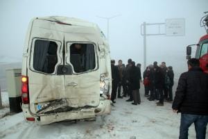 Salih Duman idaresindeki 76 DF 754 plakalı tır, Sivas-Kayseri karayolu Şarkışla girişindeki kavşakta, İdris Cesur'un (49) kullandığı 58 TS 450 plakalı servis minibüsü ile çarpıştı.