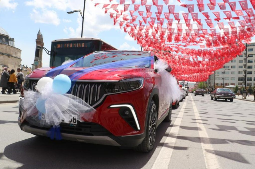 Sivas'ta yerli ve milli otomobil Togg, depremzede kardeşlerin sünnet arabası oldu.