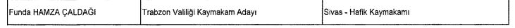 Karara göre Gürün Kaymakamlığı görevine Selami Alper Özkan, Divriği Kaymakamlığı görevine İlyas Kılıç ve Hafik Kaymakamlığı görevine ise Funda Hamza Çaldağı atandı. Atamaların Resmi Gazete’de yayımlanmasının ardından yeni kaymakamların kısa süre içerisinde görev yerlerinde mesaiye başlaması bekleniyor.