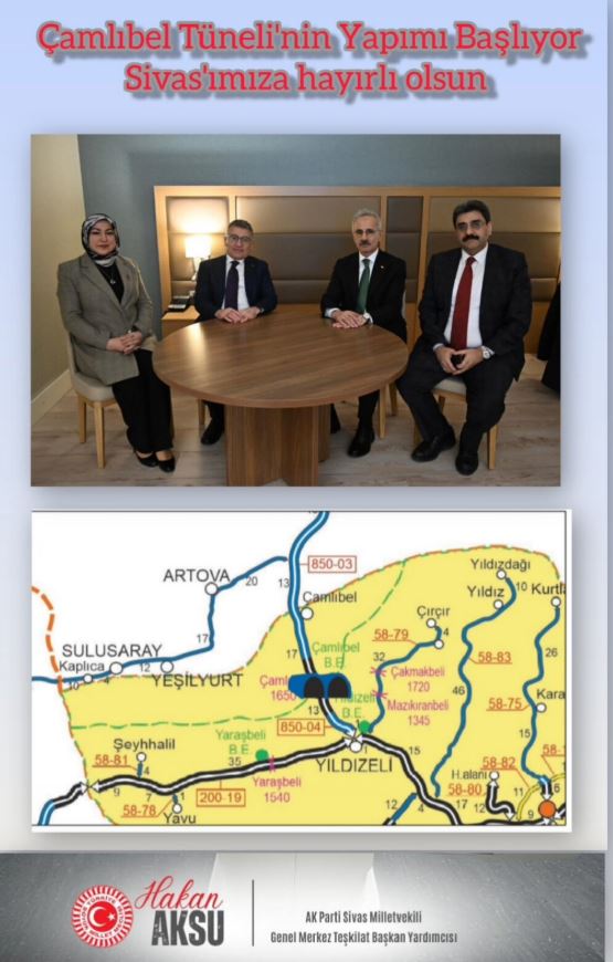 Sivas’ta Ulaşım Altyapısını Güçlendirecek Dev Proje Hayata Geçiyor.. Sivas’ta ulaşım altyapısını önemli ölçüde güçlendirecek Çamlıbel Tüneli ve Bağlantı Yolları Projesi için süreç resmen başladı.