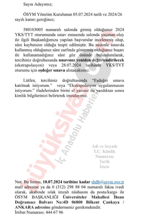Adaylara gönderilen yazıda Eşdeğer sınav veya ek puandan hangisini istediğinin belirtilmesi istenirken önümüzdeki günlerde açıklanacak olan sınav sonuçlarında ise tercih edecekleri seçenek etkili olacak...