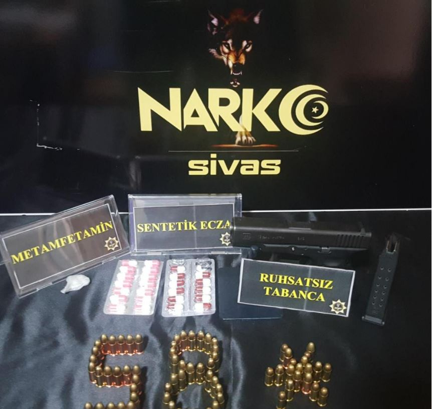 Sivas İl Emniyet Müdürlüğü Narkotik Suçlarla Mücadele Şube Müdürlüğü ekipleri tarafından son iki haftada il genelinde sokak satıcıları ve kullanıcılarına yönelik operasyonlar düzenlendi. Düzenlenen operasyonlarda: 7,2 gram metamfetamin, 5 gram esrar, 10,1 gram toz esrar, 4,55 gram bonzai, 4.573 adet sentetik ecza hap ele geçirildi. Öte yandan 1 adet tabanca ve tabancaya takılı 1 adet şarjör, 69 adet fişek, 2 adet narkotik madde kullanma aparatı ele geçirildi. Uyuşturucu bulundurma ve uyuşturucu ticareti yapma suçlamaları ile 30 kişi hakkında işlem yapılırken 3 kişi çıkartıldıkları adli makamlarca tutuklanarak cezaevine konuldu. Sivas İl Emniyet Müdürlüğünden yapılan açıklamada, uyuşturucuyla mücadelenin aralıksız sürdürüleceği belirtildi.-iha