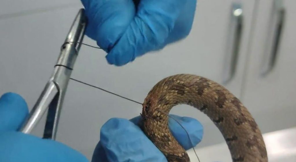 Sivas’ta üzerinden araç geçmesi sonucu yaralanan yılan, 3 aylık tedavi sürecinin ardından doğal yaşamına bırakıldı.