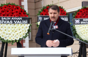 Sivas’ta vefat eden polis memuru için il emniyet binası önünde tören düzenlendi.
