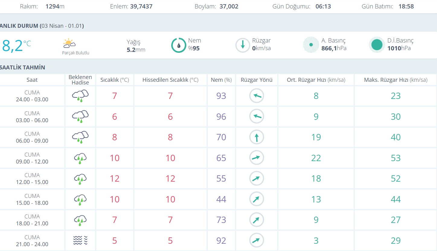 Meteorolojik verilere göre şehirde parçalı bulutlu ve yağışlı bir hava hakim olurken, sıcaklık 8,2 derece olarak ölçüldü.