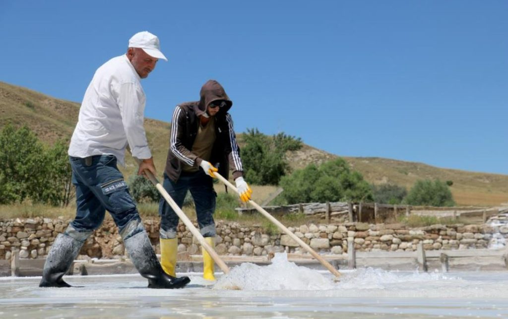 Geleneksel yöntemlerle doğal tuz ürettiklerini ifade eden işletmeci Yunus Yılmaz, “Sivas ve çevresinde Fadlum Tuzu olarak bilinir. 150 yıldır üretim yapan bir yer burası. Daha önceden devlete aitti. 2000 yılında özelleşti, biz aldık. Yaz aylarında çıkar. 4 aylık üretim sezonumuz var. Geriye kalan aylarda da bakım ve tadilat oluyor. 11’nci aya kadar üretim yapıyoruz. Daha sonra da çıkan tuzlu suyu mevsim şartlarına göre depoluyoruz. Mayıs, Haziran gibi havuzların temizliği yapılıyor. Temizlikten sonra stokta birikmiş tuzlu suyu havuzlara bırakıyoruz. Güneş sayesinde buharlaşmadan dolayı doğal tuz elde ediyoruz” diye konuştu.