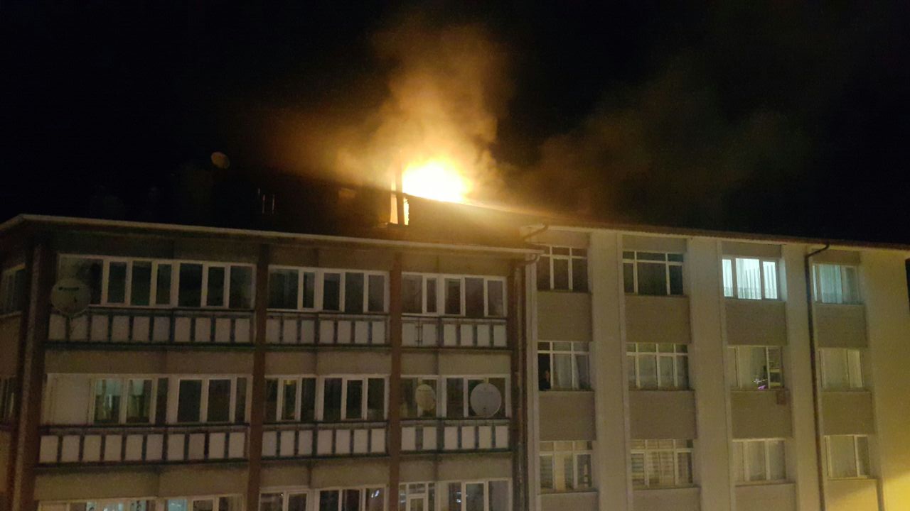 Sivas'ta bir binanın çatısında çıkan yangın, korku ve paniğe yol açtı.