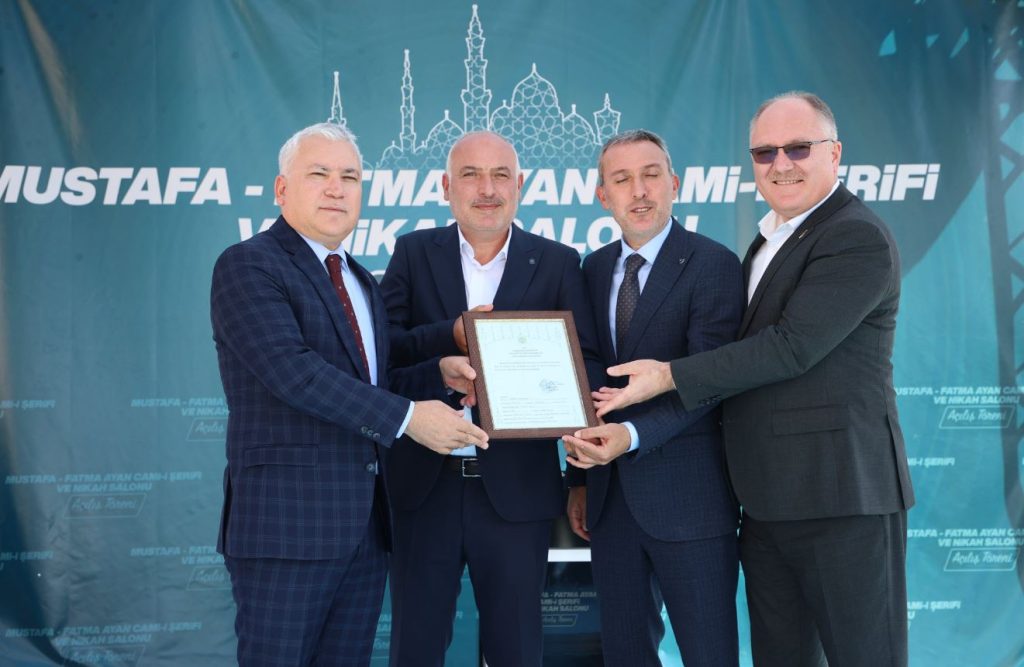 Camiyi yaptıran hayırsever iş insanı Celil Ayan ve ailesine teşekkür eden Vali Şimşek, caminin ilçeye, Sivas'a ve İslam Âlemi için hayırlara vesile olmasını diledi. (Halil Yavuz Canpolat)