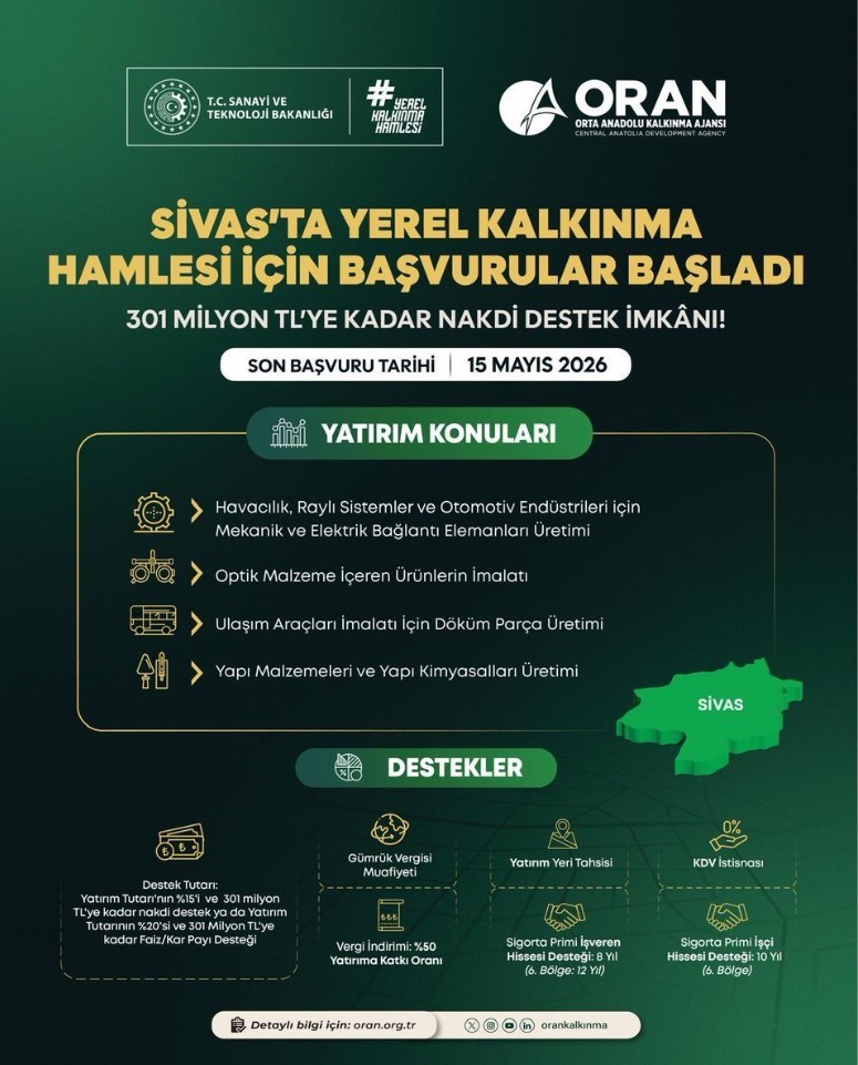 Sivas, yerel kalkınma, teşvik programı, yatırım destekleri, ORAN kalkınma ajansı