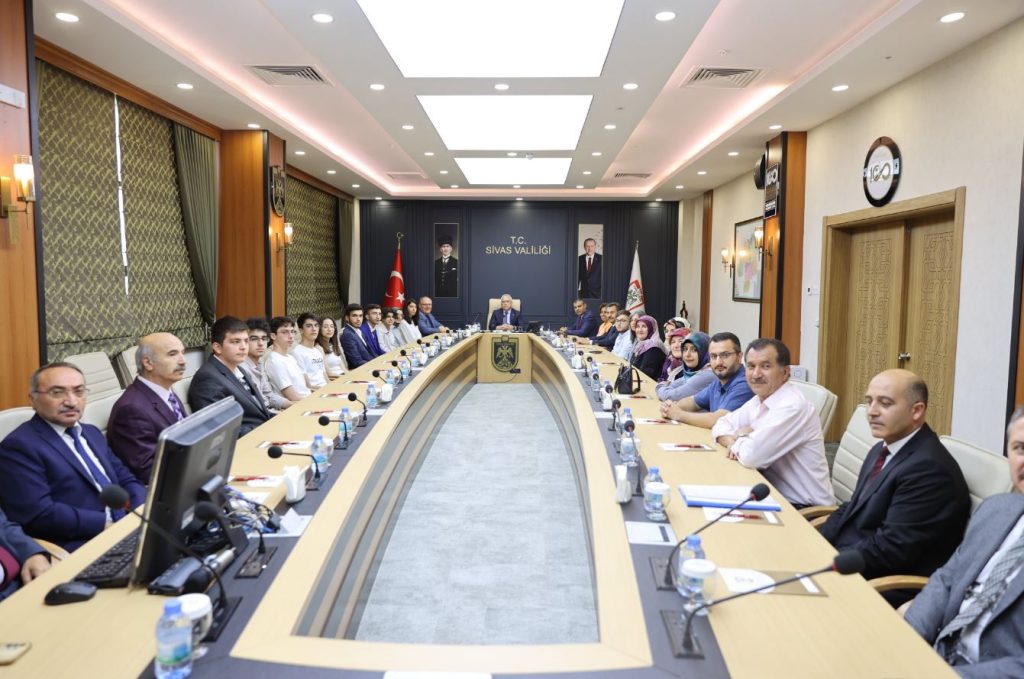 Sivas Valisi Yılmaz Şimşek, Sivas'ta Türkiye genelinde YKS’de ilk 500’e giren öğrencileri Valilik makam Toplantı Salonu’nda kabul ederek, başarılarından dolayı tebrik etti.