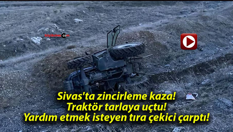 Sivas'ta zincirleme kaza! Traktör tarlaya uçtu! Yardım etmek isteyen tıra çekici çarptı!