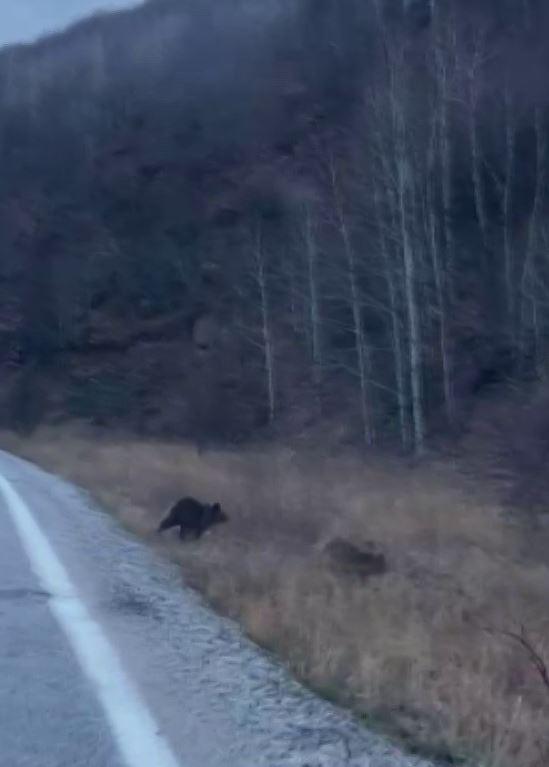 Kış uykusuna yatması gereken ayılar yollara indi. Doğanşar-Hafik yolu üzerinde otomobille seyir halindeyken Bahadır Karataş ve arkadaşının önüne anne ayı ve iki yavrusu çıktı. Karataş, hemen cep telefonunun kamerasını açarak, ayıların kaçışını kaydetti. Görüntüde ayılar bir süre aracın önünde koşup, daha sonra ormanlık alana girerek gözden kayboldular.