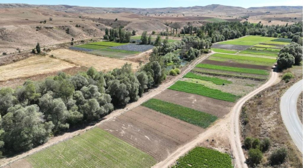 Sivas’ın Yıldızeli ilçesine bağlı Töngel köyünde 80 dönümlük araziye ekilen 10 çeşit sebze adeta bozkırı yeşertti.