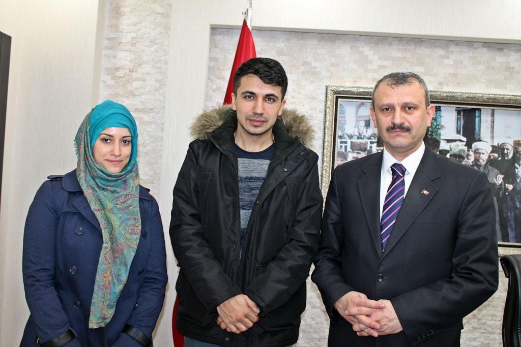 İl Müftüsü Şükrü Balkan, Lainez'e Türkçe ve İngilizce yazılı İslamı anlatan kitaplarla Kur'an-ı Kerim hediye etti. (AA)