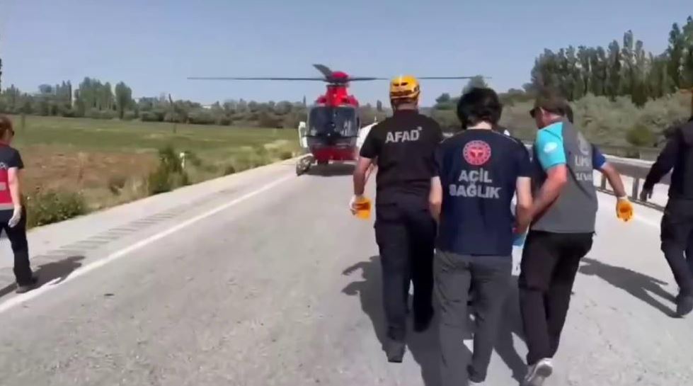 Sivas'ın Yıldızeli ilçesinde 1 kişinin öldüğü 5 kişinin yaralandığı trafik kazasında ağır yaralanan bir kişi karayoluna inen ambulans helikopterle hastaneye yetiştirildi.