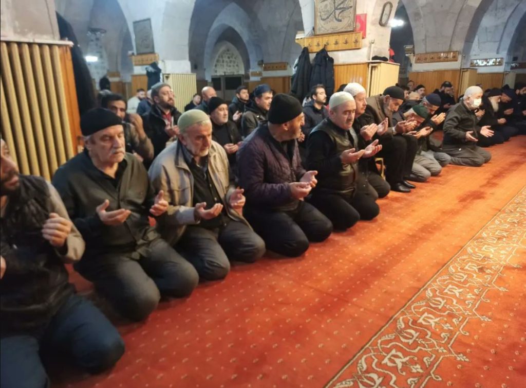Ulu Cami başta olmak üzere kent genelinde tüm camilerde gerçekleştirilen dua programında namaz öncesi Kur'an-ı Kerim okunup dua edildi. (Halil Yavuz Canpolat)
