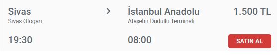 Sivas’tan sabah ve akşam saatlerinde kalkan otobüsler, yaklaşık 12 saatlik bir yolculuğun ardından İstanbul’a varıyor. Firmaların çoğu, güzergâh üzerinde bulunan Ankara, Eskişehir, Bolu, Düzce ve Sakarya gibi illerde duraklayarak yolcu indirip bindiriyor.