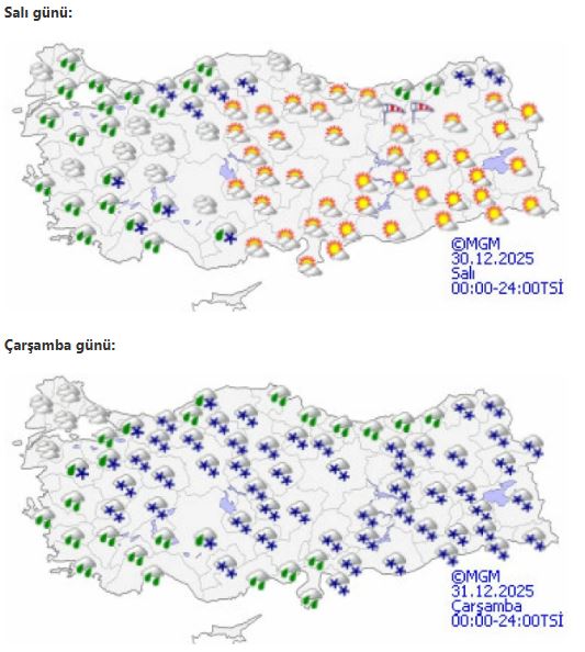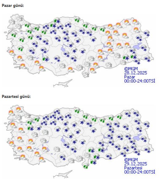 Tahminlere göre yurdun büyük bölümü parçalı ve çok bulutlu olacak. Orta Karadeniz kıyıları, Çanakkale, Balıkesir, İstanbul, Manisa ve Giresun çevreleri ile İzmir’in kuzey kesimlerinde yağmur ve sağanak yağış beklenirken; İç Anadolu, Batı Karadeniz, Orta ve Doğu Karadeniz’in iç kesimleri, Doğu Anadolu’nun büyük bölümü ve Güneydoğu Anadolu’nun bazı illerinde karla karışık yağmur ve kar yağışı etkili olacak. Yağışların Batı Karadeniz’de yer yer kuvvetli olacağı tahmin ediliyor.