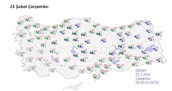 Salı gününden itibaren yağışlı sistemin doğuya çekileceği, batı ve güney kesimlerde havanın parçalı bulutlu ve daha ılıman seyredeceği öngörülüyor. Çarşamba günü ise ülke genelinde daha dengeli bir hava görünümü beklenirken batı bölgelerde sıcaklıkların yeniden yükselmesi tahmin ediliyor.